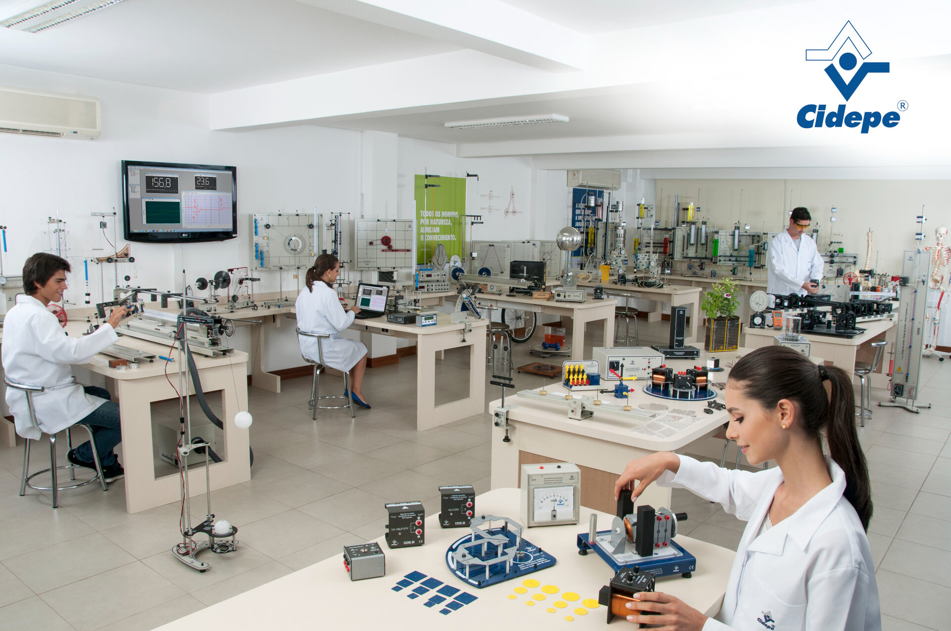 - Atualmente, a estrutura do CIDEPE abriga um moderno Showroom e espaços exclusivos para treinamentos de profissionais em variadas áreas educacionais como Física, Química, Biologia, Matemática e Ciências.